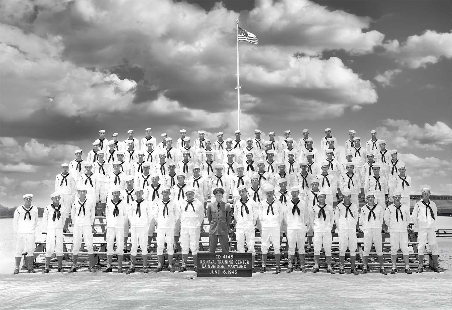 This photograph was taen on June 15, 1945, and had been housed in a museum until a flood ruined a lot of its contents, including this picture. The picture suffered from water-damage artifacts, tears, ink bleed-though from writing on the back of the picture, dust scratches, faded image information. Combine this with the fact it looked as though the original image was overexposed when taken. The restoration took over 6 hours.
